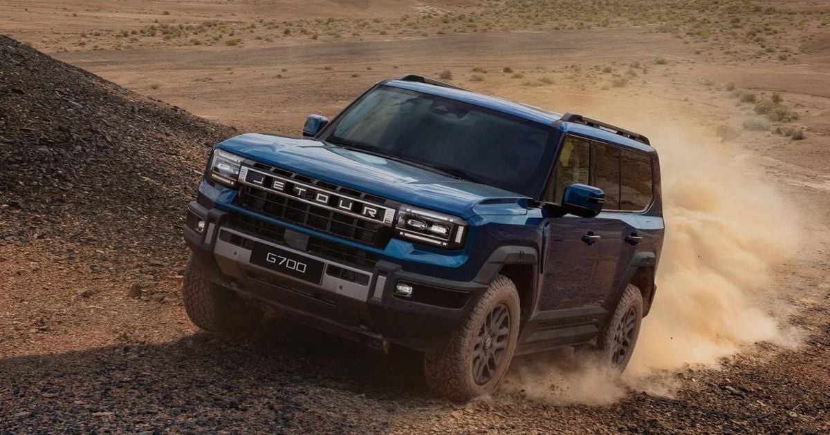 G700, найбільший автомобіль Jetour, розпочав виробництво у 2025 році і знаходиться у розробці для ринків з правим кермом. Довжина 5198 мм перевищує розміри навіть Toyota LandCruiser 300 Series, вміщуючи шістьох пасажирів на трьох рядах сидінь. G700 оснащений новою рамною конструкцією та потужною гібридною силовою установкою: